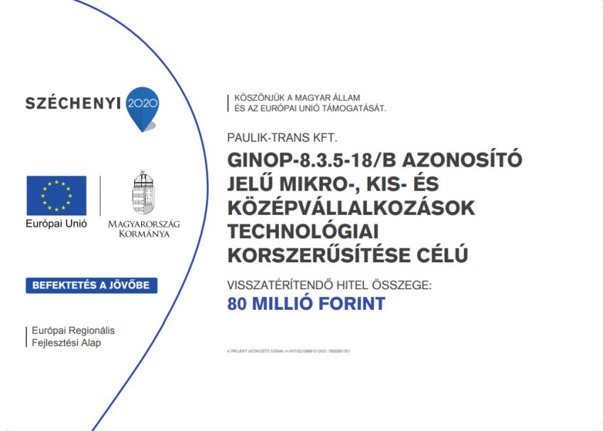GINOP-8.3.5-18/B azonosító jelű Mikro-, kis- és középvállalkozások technológiai korszerűsítése